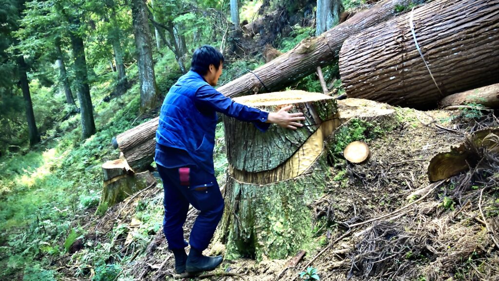 山は村民から大事に扱われ、長い歴史の中で山を育てる技術が培われてきました。こうして多くの人の手で非常に細やかな手入れがなされ、育てられた人工林は非常に美しい景観を保っており、木材は最高級材として扱われています。