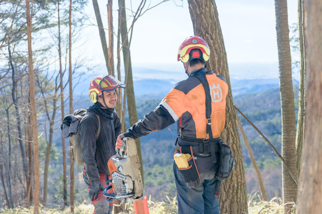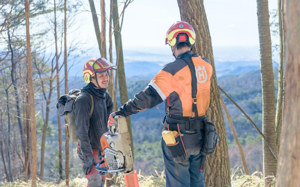 また、ヘルメット・安全装備・チェーンソー・高性能機械に至るまで、必要なものはすべて会社が貸与。