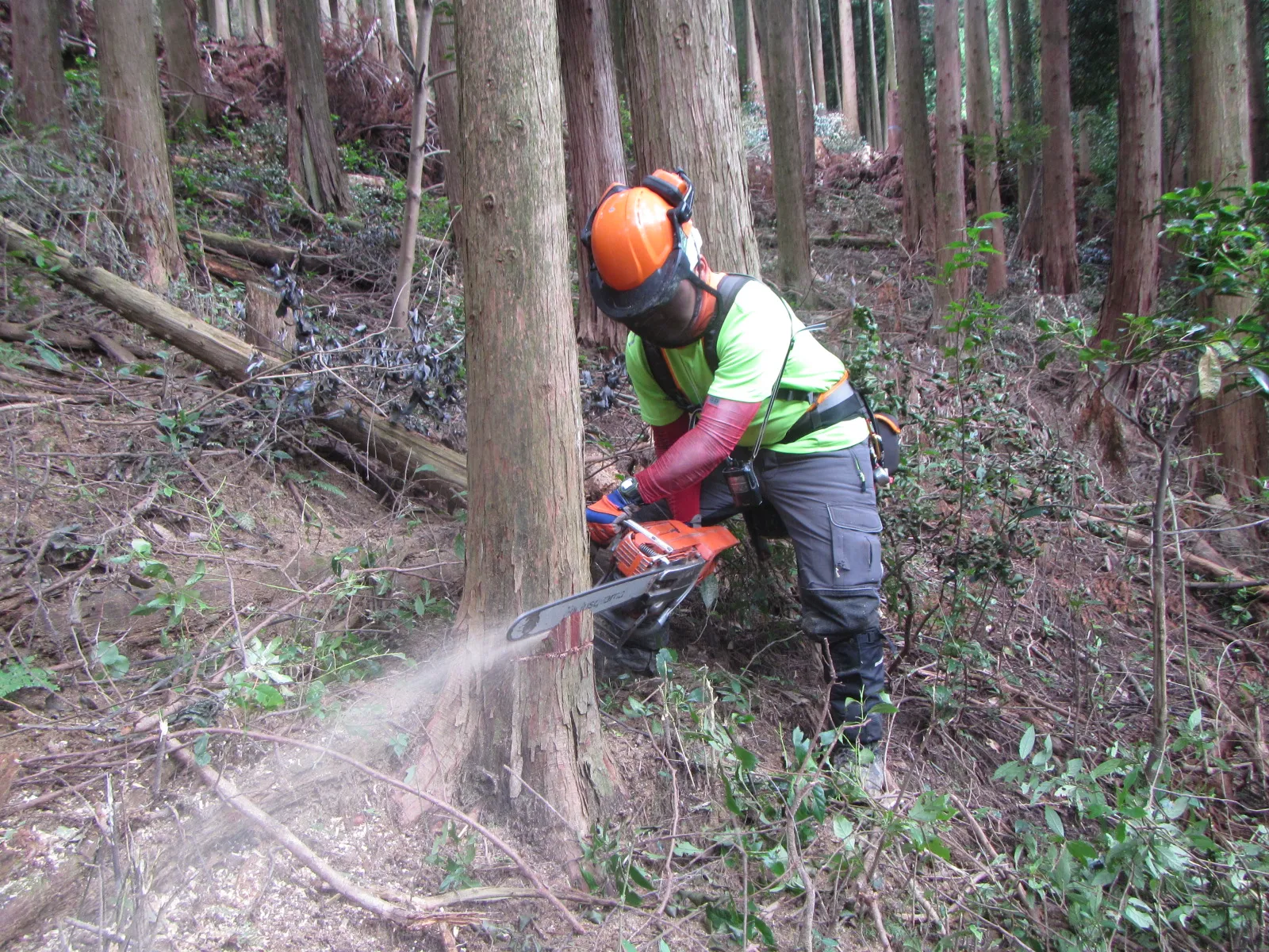 素材生産が中心ですが、森を育てる工程にも関われるため、林業全体の流れを学ぶことができます。