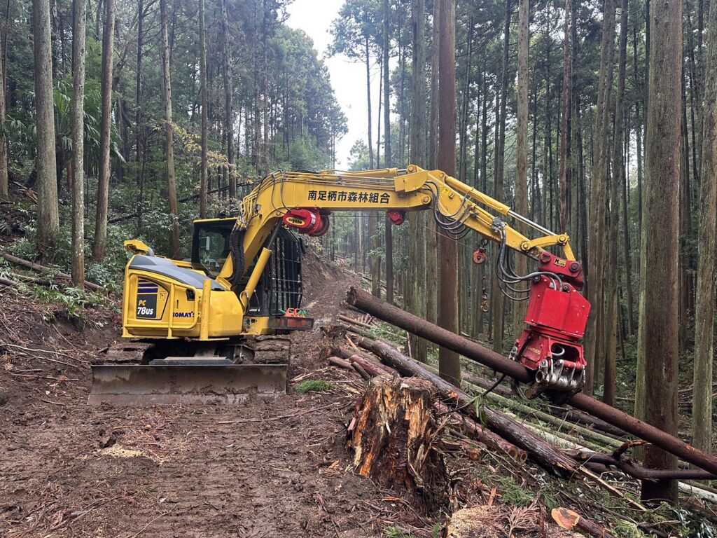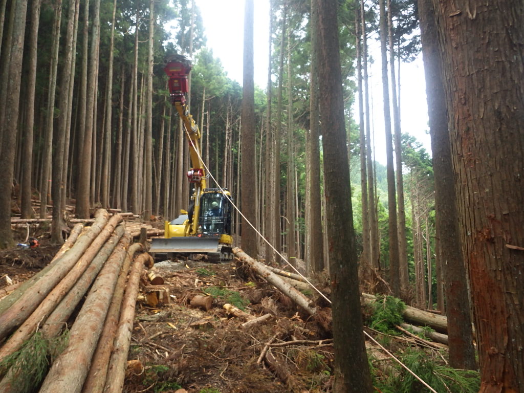 - 森林作業道の作設・グラップル集材機を使用した木材搬出