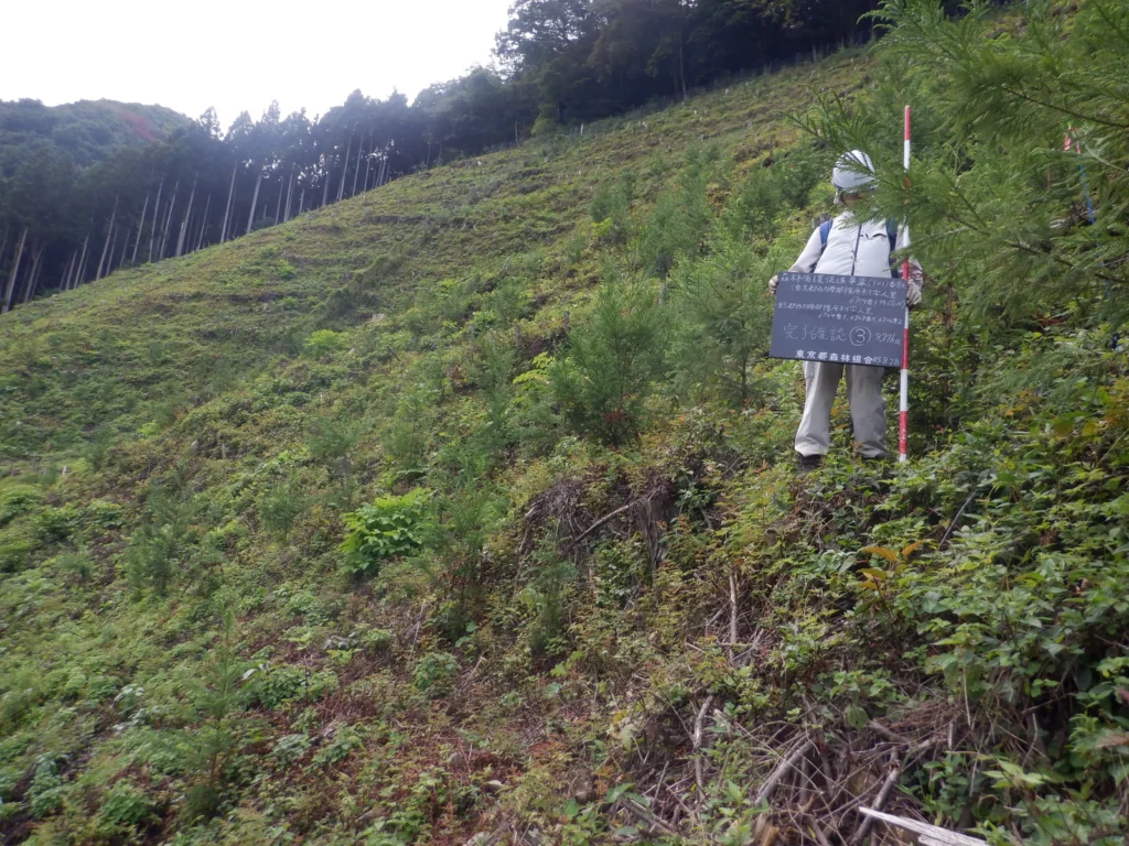 東京都の森林を健全な状態で未来につなぐため、伐採や植栽が予定されている森林を適切に管理・確認する仕事をしています。
