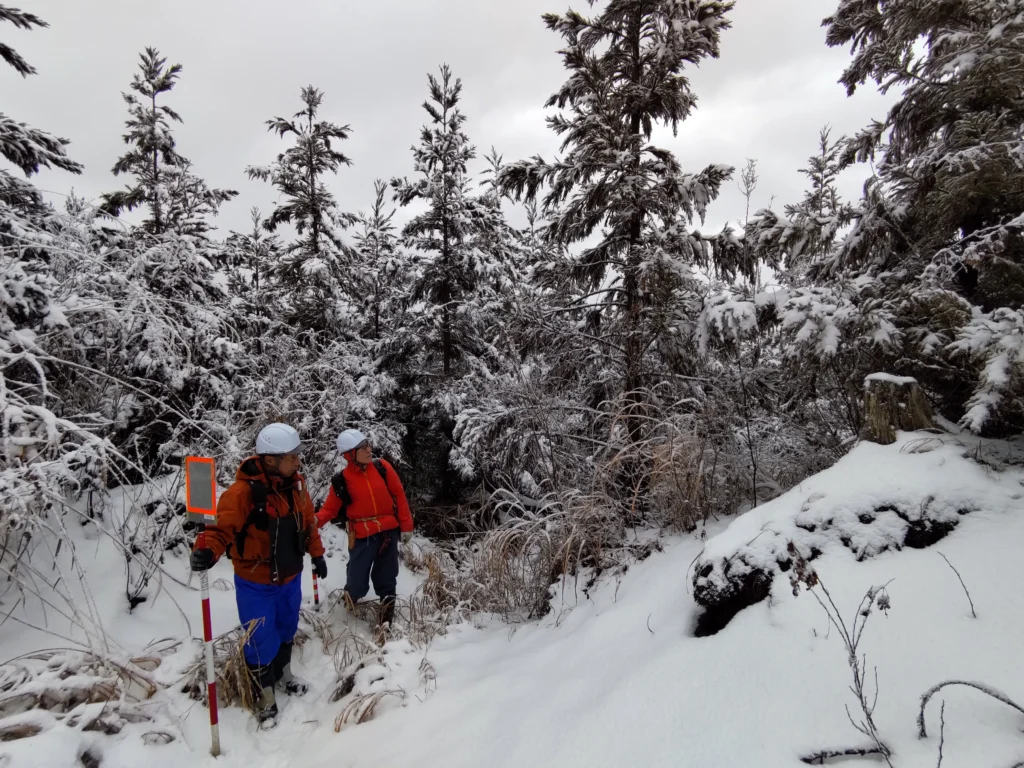 登⼭道ではない急斜⾯を含む森林内を歩きますので次の服装と持ち物をご準備ください。