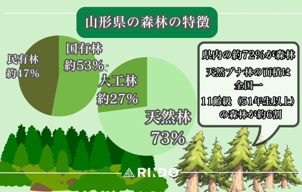 次に、山形県の森林・林業の特徴を見ていきましょう。
